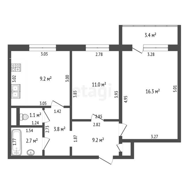 - Площадь кухни9.2 м²