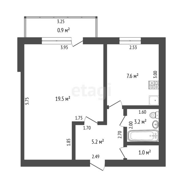 - Площадь кухни7.6 м²