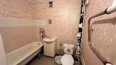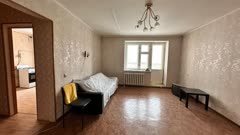 В квартире сделан косметический ремонт, комната достаточно большая, кухня правильной квадратной формы, санузел соеденен.
