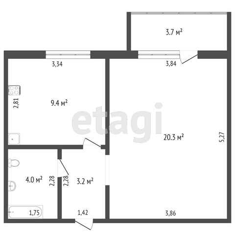 - Общая площадь37.8 м²